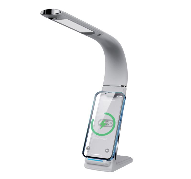 Με ασύρματη φόρτιση έως 10W για κινητά με το πρότυπο Qi. Λειτουργία ντιμαρίσματος και τρεις θερμοκρασίες φωτός: Θερμό (3000k) Λευκό (4000k) Ψυχρό (5000k) 8W 520Lm Διάχυση φωτός: 180° Ra>80 IP20 Διαστάσεις βάσης: 160x120mm Διάσταση βραχίονα: 325mm Διάσταση φωτιστικού: 285mm *με καλώδιο USB Type-C σε A, δεν περιλαμβάνει φορτιστή