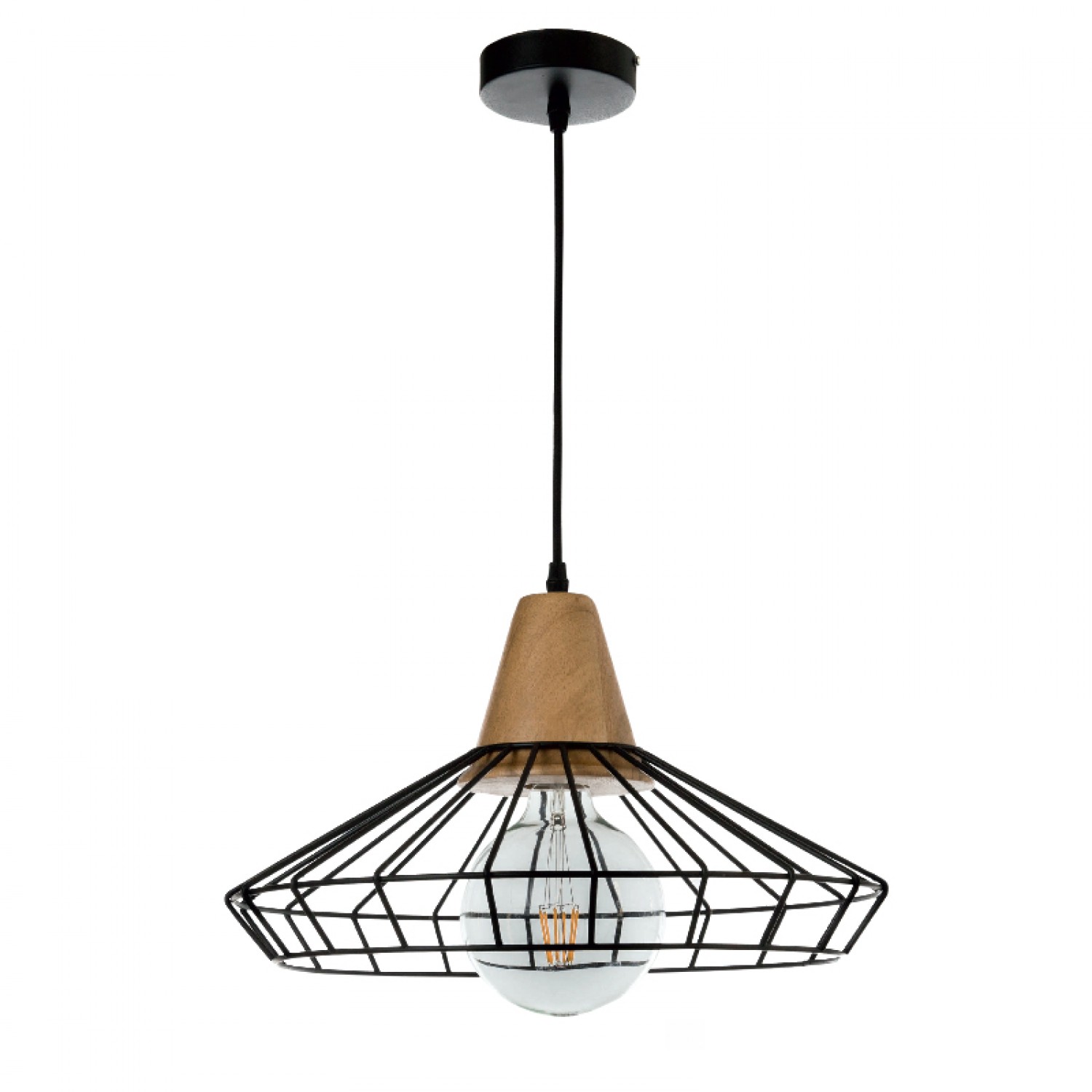 InLight Κρεμαστό φωτιστικό από μαύρο μέταλλο και ξύλο 1XE27 D:40cm (4389)